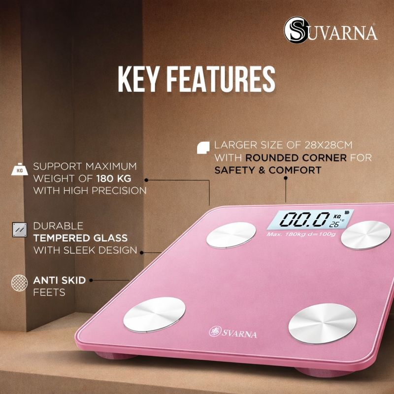Introducing the Suvarna AI Smart Digital Weighing Scale – Model Electro Super, a next-generation intelligent personal scale designed for accuracy, durability, and futuristic aesthetics. Powered by AI-based precision technology, this scale delivers ultra-accurate weight readings every time, making it your perfect fitness partner at home, in the gym, or in clinics. Its strong tempered glass platform ensures long-lasting use, while the sleek digital LCD display offers clear readability of weight, temperature, and low-battery indicators. The step-on auto activation makes weighing quick and convenient — no buttons needed! With a maximum capacity of 200kg, this smart weighing scale is built to meet the needs of modern households. The AI-themed design not only adds an elegant touch to your interior but also symbolizes innovation and technology. Whether you’re tracking your fitness journey, maintaining body balance, or managing health goals, the Suvarna AI Digital Scale provides accurate insights every day. Perfect for: Home, gym, yoga studios, clinics, or salons. Keywords: AI weighing scale, digital weight machine, electronic body weight scale, smart bathroom scale, tempered glass weighing scale, fitness weight monitor, Suvarna digital scale.